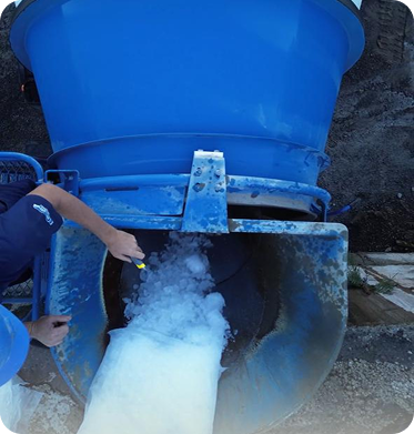 O resfriamento se faz com a utilização de gelo em substituição de parte da água dentro do balão betoneira, desta forma, a temperatura do produto durante sua mistura, transporte e lançamento se preserva abaixo dos valores pré-estabelecidos no cálculo de calor de hidratação do cimento. Além de que, se faz necessário a utilização de aditivo estabilizador para que a temperatura se mantenha durante todo o processo com o produto.